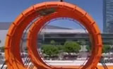 مقطع سيارتين سباق من خلال حلقة مزدوجة
