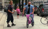 مقطع رجل عملاق يقود دراجة فتيات صغيرة